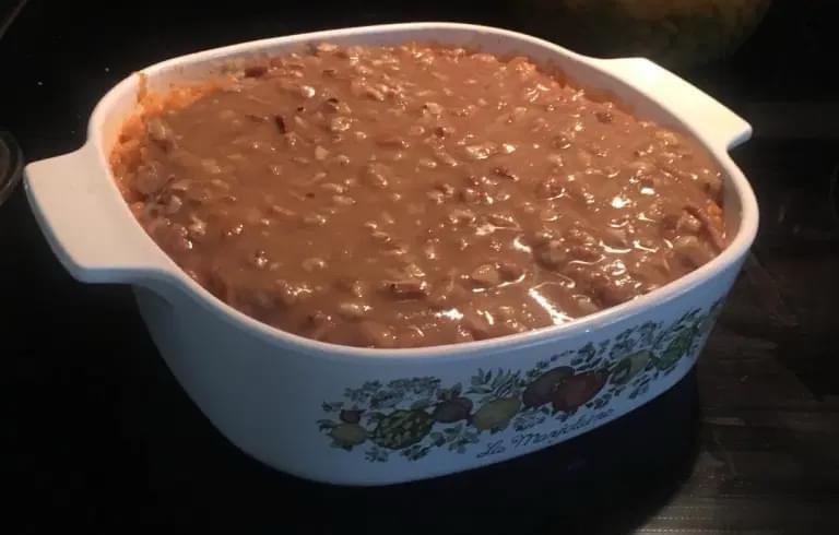 Place on top of bean mixture. Bake at 325 degrees (163 Celsius) for 30 minutes.